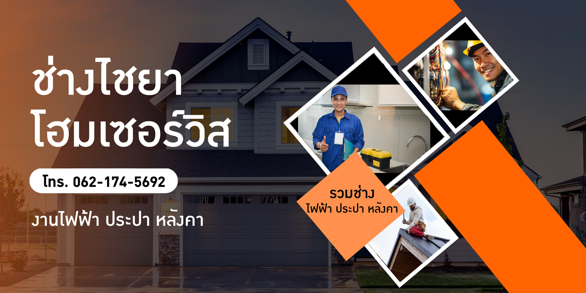 บริการงานซ่อมบ้านครบวงจร งานไฟฟ้างานประปางานหลังคาและทาสี รีโนเวทบ้านใหม่ ทำฝ้าผนังภายนอกภายใน ติดตั้งสุขภัณฑ์ประสบการณ์สูงและใส่ใจลูกค้า ทีมงานมืออาชีพการันตีผลงาน